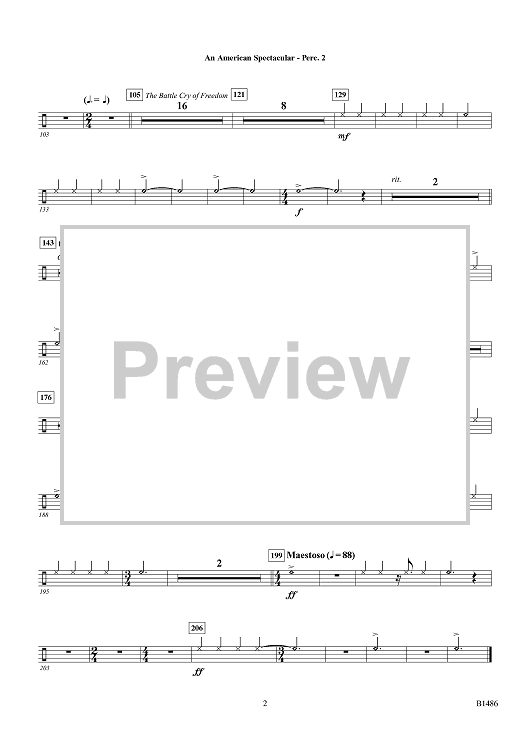 "An American Spectacular - Percussion 2" Sheet Music by Traditional