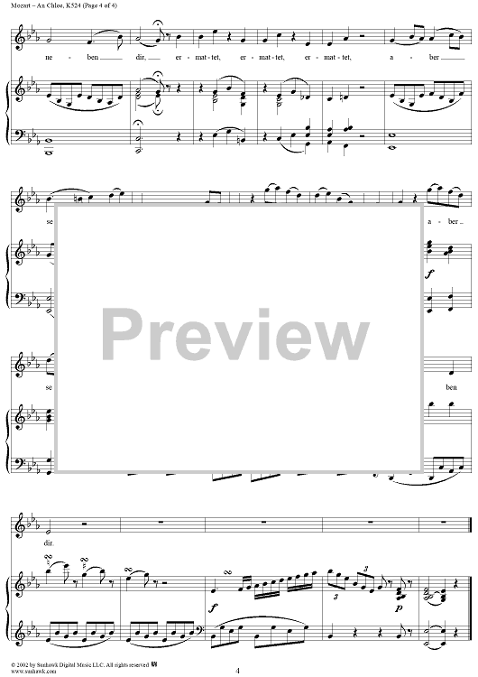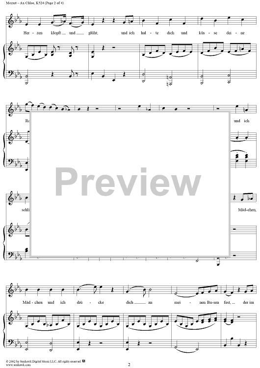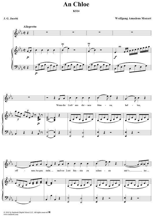 Digital Sheet Music for An Chloe, K524 by Wolfgang Amadeus Mozart, J. G. Jacobi scored for Voice/Piano; id:291367