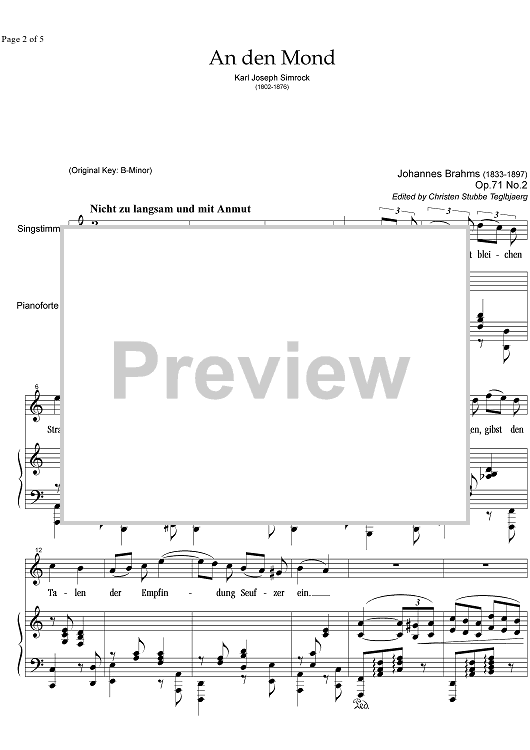 Digital Sheet Music for An den Mond Op.71 No. 2 by , Johannes Brahms scored for Mezzo-soprano or Baritone/Piano; id:336932