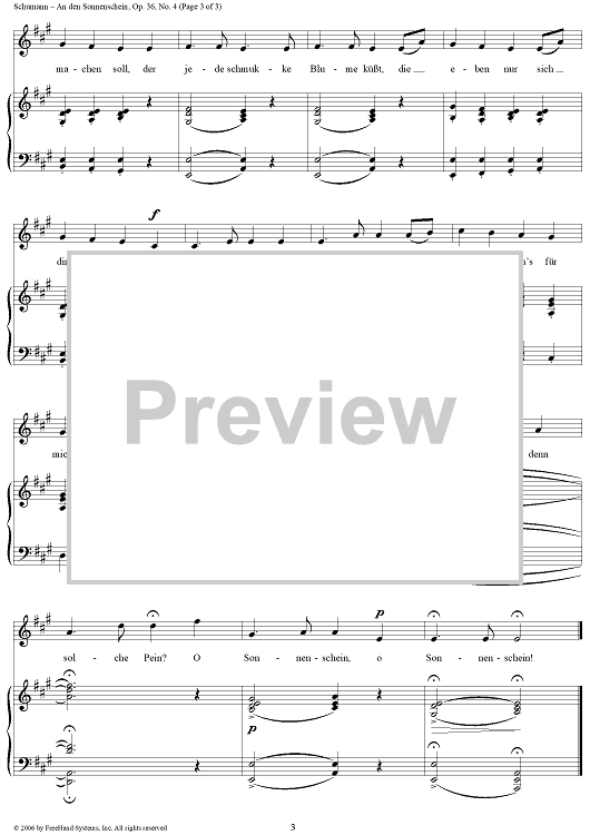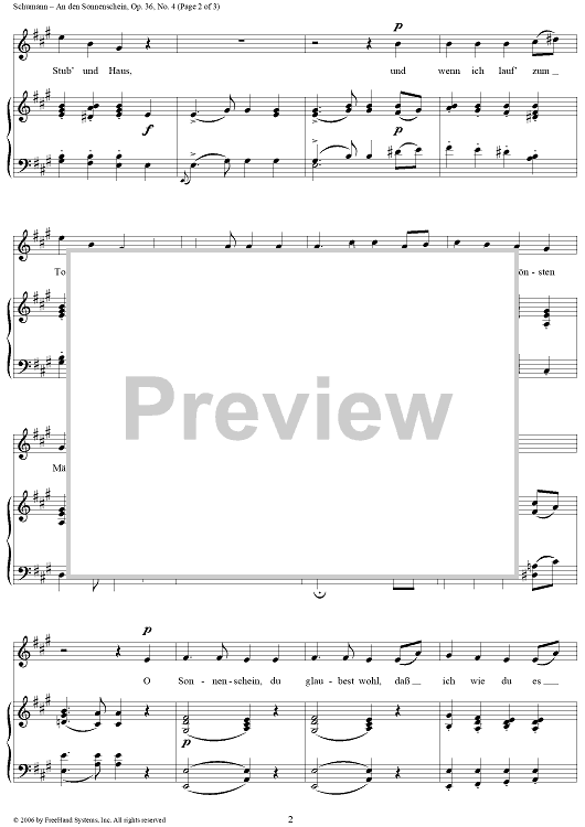 Digital Sheet Music for An den Sonnenschein, Op. 36, No. 4 by Robert Schumann, Reinick scored for Voice/Piano; id:316337