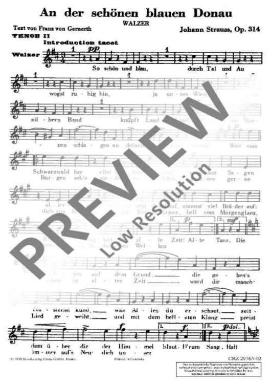 Digital Sheet Music for An der schönen blauen Donau - Tenor Ii by Johann Strauß (Son) scored for Men's Choir (ttbb) And Piano; id:472140