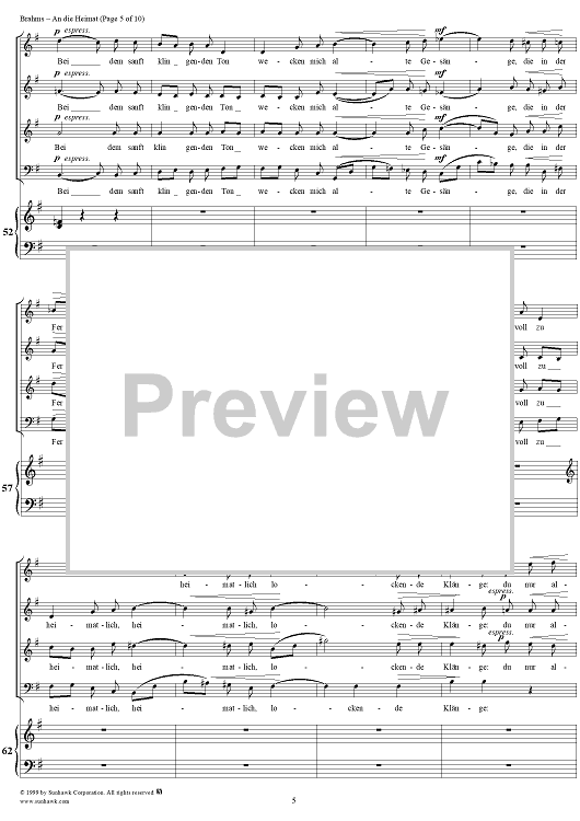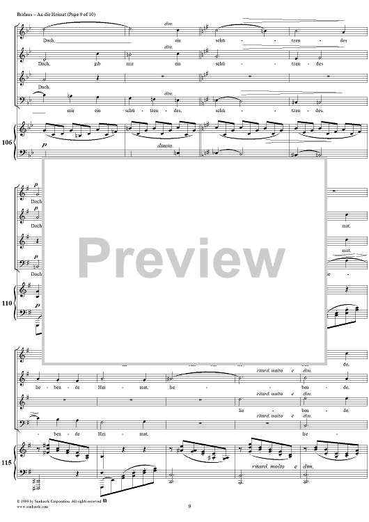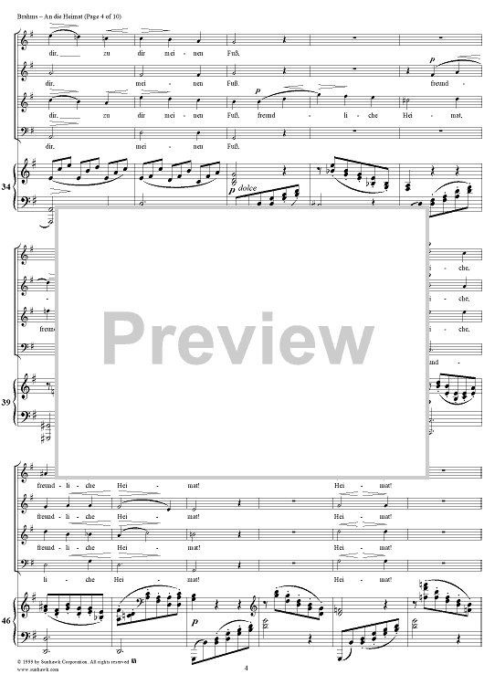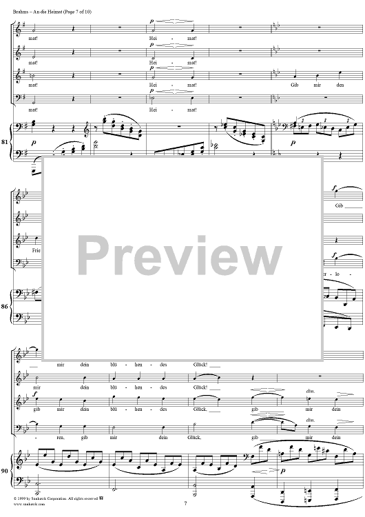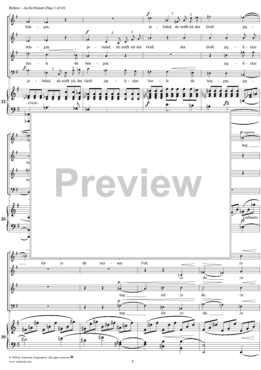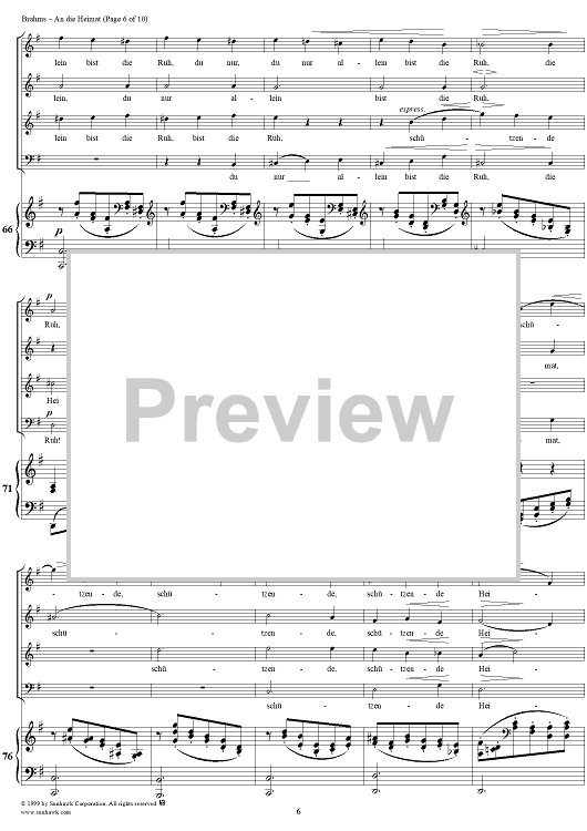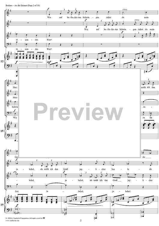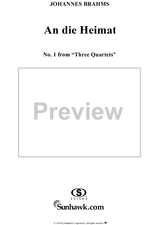 Digital Sheet Music for An die Heimat - No. 1 from "Three Quartets, Op.64" by Johannes Brahms, Sternau scored for Four-part Mixed Chorus/Piano; id:274568