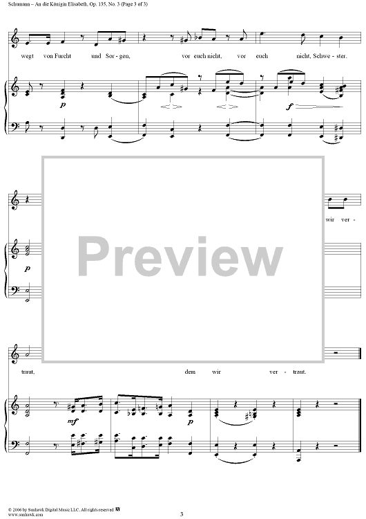 Digital Sheet Music for An die Königin Elisabeth, Op. 135, No. 3 by Robert Schumann scored for Voice/Piano; id:318621