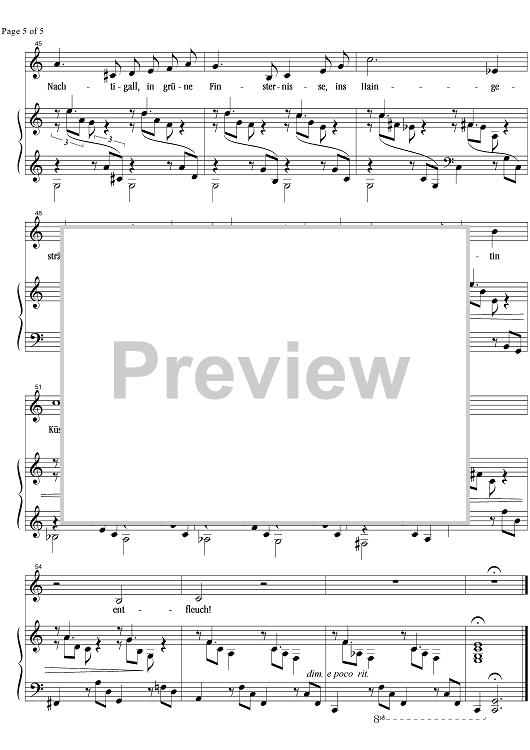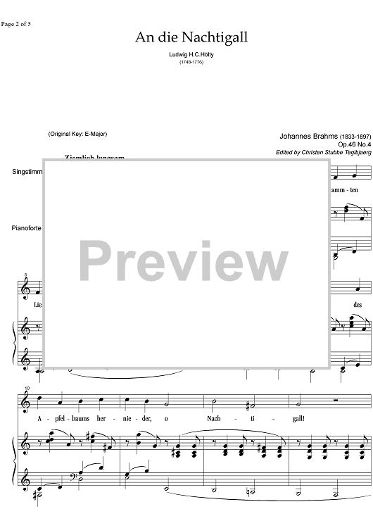 "An die Nachtigall Op.46 No. 4" Sheet Music by Johannes Brahms