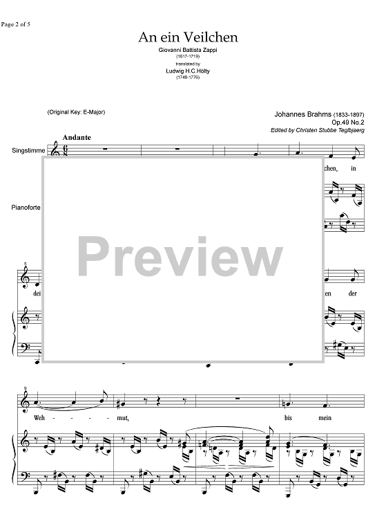 "An ein Veilchen Op.49 No. 2" Sheet Music by Johannes Brahms
