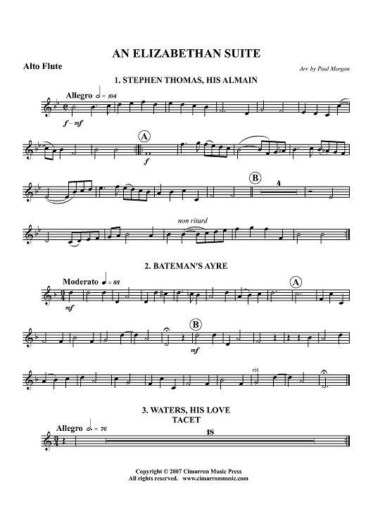 Digital Sheet Music for An Elizabethan Suite - Alto Flute by , Various, Paul Morgan scored for Flute Quartet; id:366618