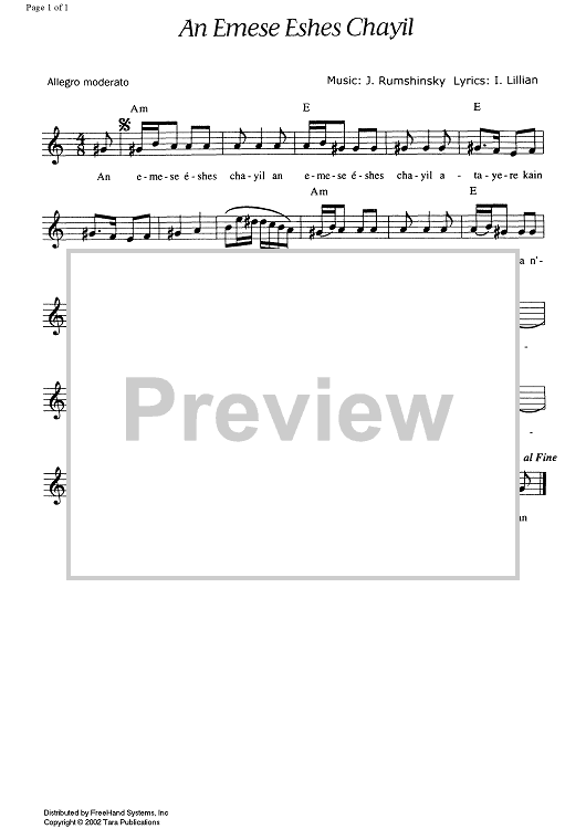 Digital Sheet Music for An Emese Esjes Chayil - Score by Velvel Pasternak, J. Rumshinsky scored for Any Klezmer instrumentation; id:343926