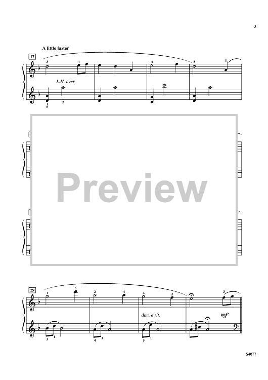 A peaceful composition, reminiscent of Satie's Gymnopedies. Features some ledger line reading in both clefs and left-hand crossovers.