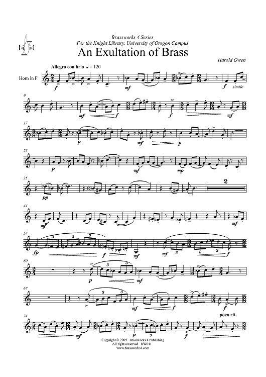 "An Exultation Of Brass - Horn in F" Sheet Music by Harold Owen