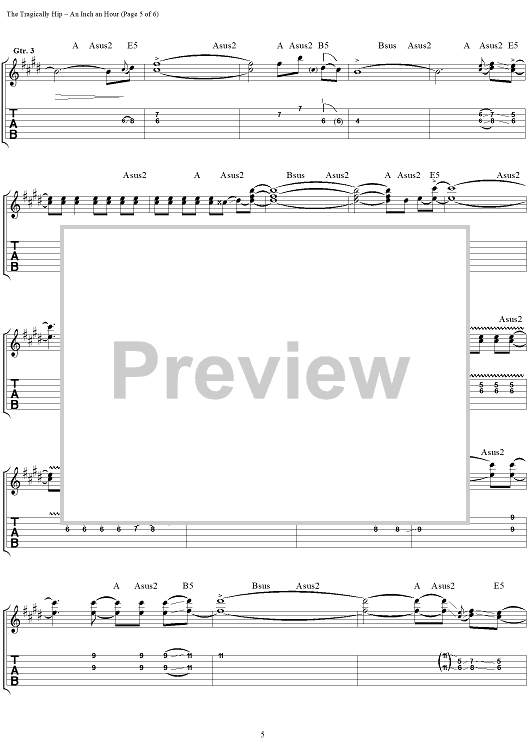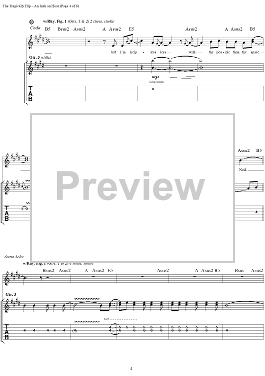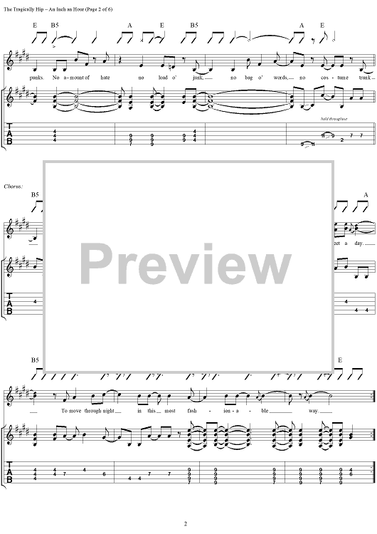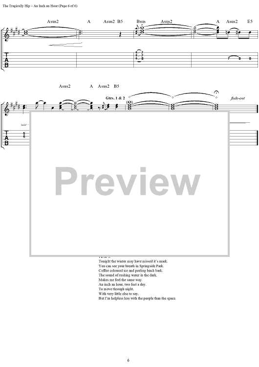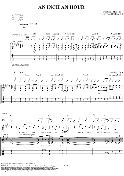 "An Inch An Hour" Sheet Music by The Tragically Hip