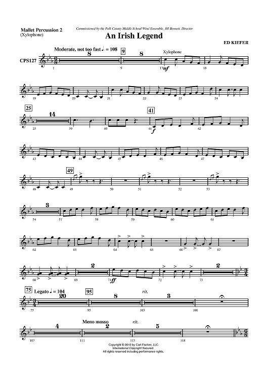 Digital Sheet Music for An Irish Legend - Mallet Percussion 2 by Ed Kiefer scored for Concert Band; id:430618