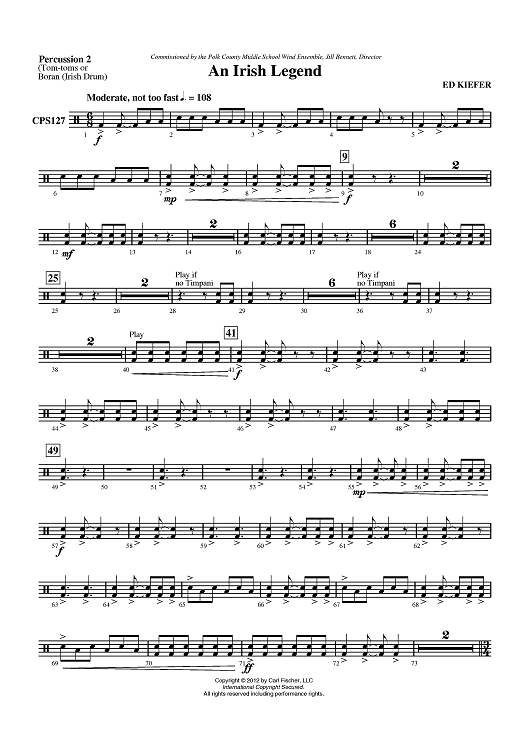 "An Irish Legend - Percussion 2" Sheet Music by Ed Kiefer