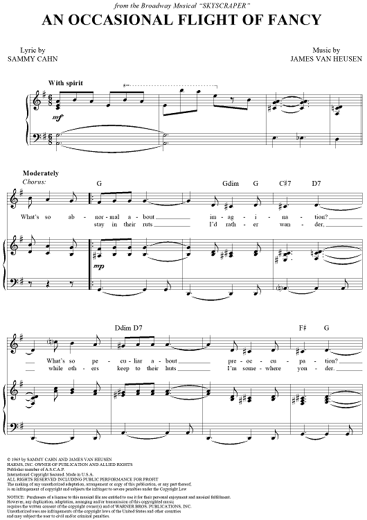 Digital Sheet Music for An Occasional Flight of Fancy by Sammy Cahn, Jimmy Van Heusen scored for Piano/Vocal/Chords; id:321635