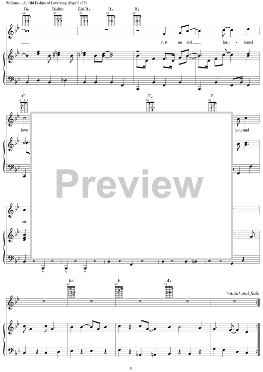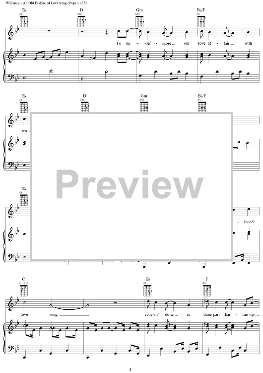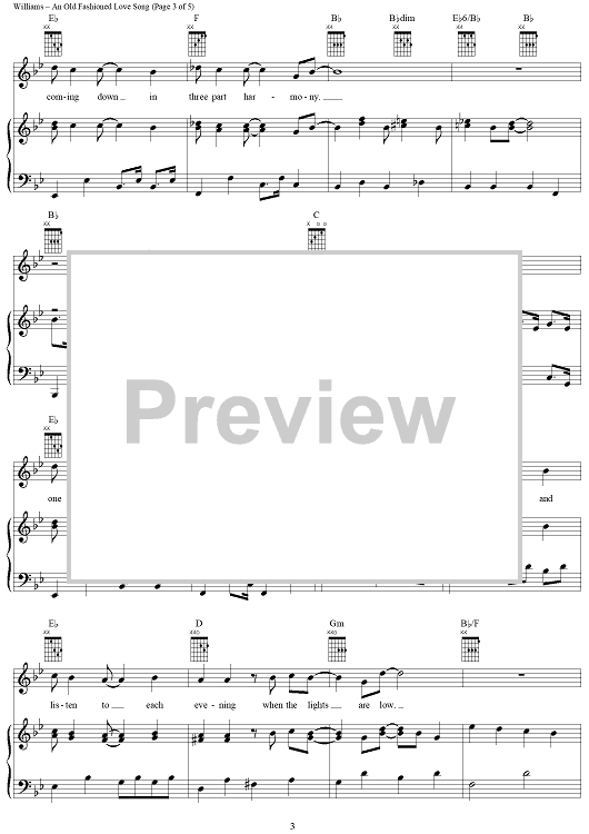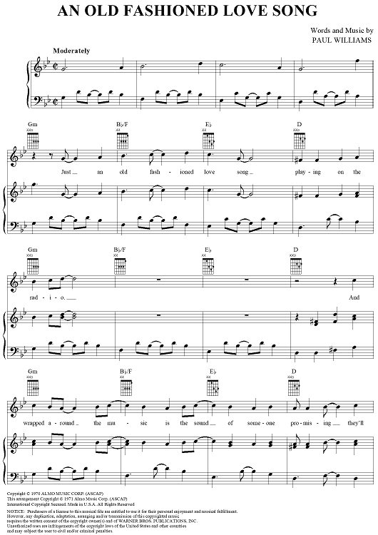 Digital Sheet Music for An Old Fashioned Love Song by Paul Williams, Three Dog Night scored for Piano/Vocal/Chords; id:262873