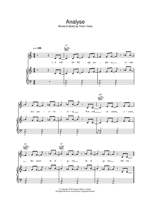 Digital Sheet Music for Analyse by Thom Yorke scored for Piano/Vocal/Chords; id:391552