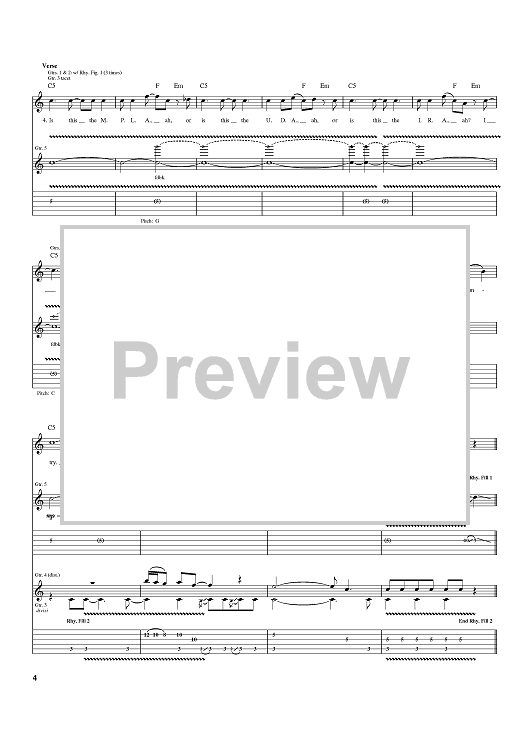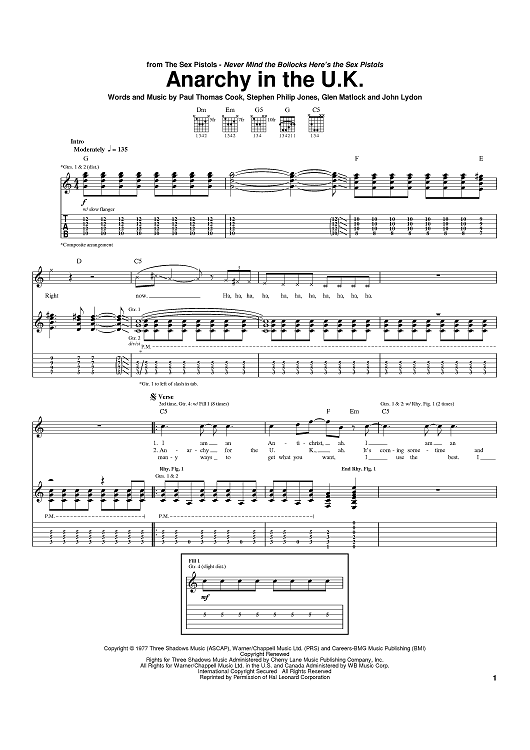 Digital Sheet Music for Anarchy In The U.K. by Mötley Crüe, John Lydon, Glen Matlock, Sex Pistols, Paul Thomas Cook, Stephen Philip Jones, Megadeth scored for Guitar Tab; id:394821
