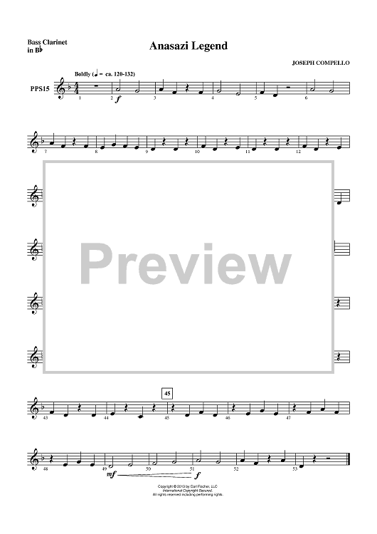 Digital Sheet Music for Anasazi Legend - Bass Clarinet (opt. Euphonium TC) by Joseph Compello scored for Concert Band; id:435989