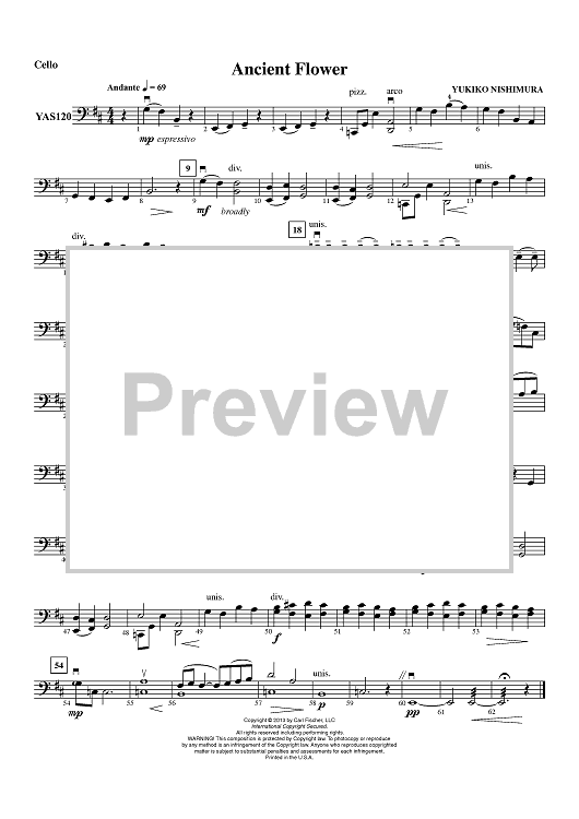 "Ancient Flower - Cello" Sheet Music by Yukiko Nishimura