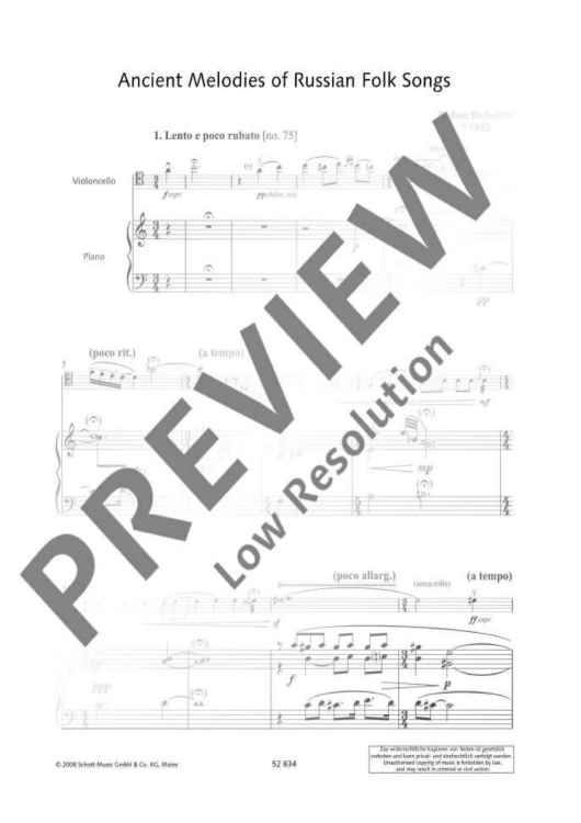Digital Sheet Music for Ancient Melodies of Russian Folk Songs by Rodion Shchedrin scored for Cello And Piano; id:477480