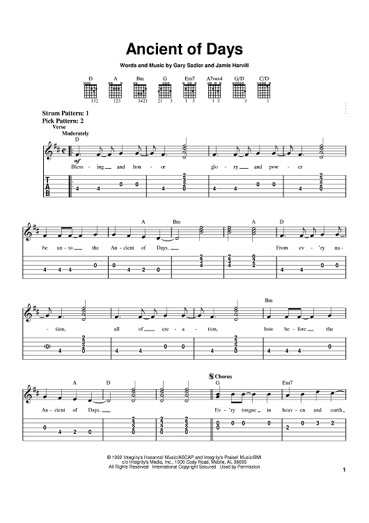 Digital Sheet Music for Ancient Of Days by Gary Sadler, Petra, Jamie Harvill scored for Easy Guitar Tab; id:372521