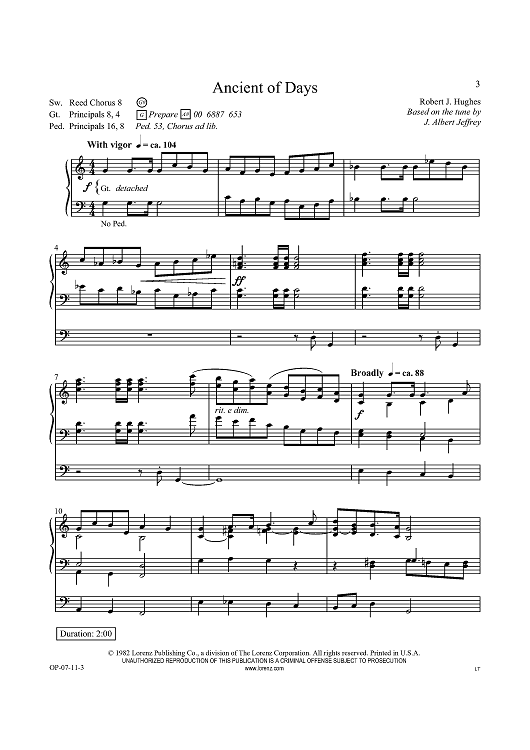 Digital Sheet Music for Ancient of Days by Robert J. Hughes, J. Albert Jeffrey scored for Organ Solo; id:434371