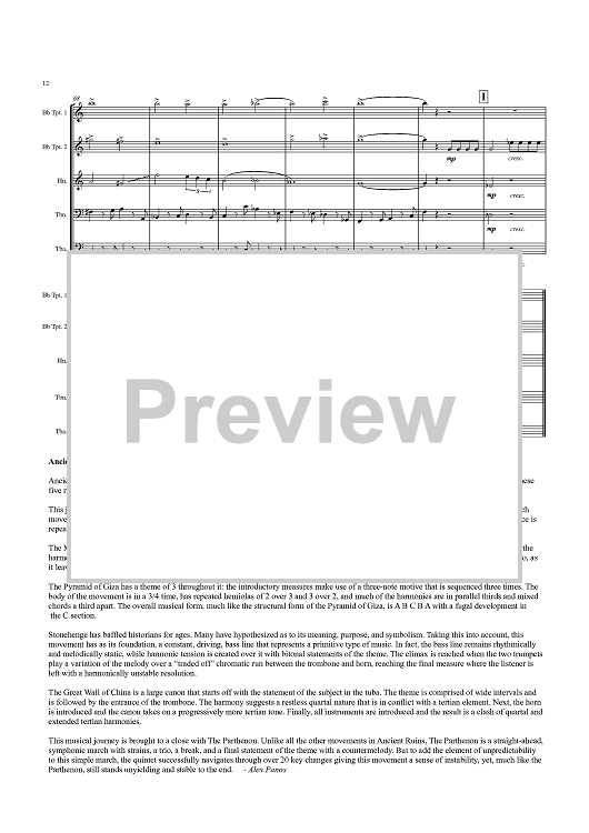 Digital Sheet Music for Ancient Ruins - Score by Alexander Panos scored for Brass Quintet; id:363193