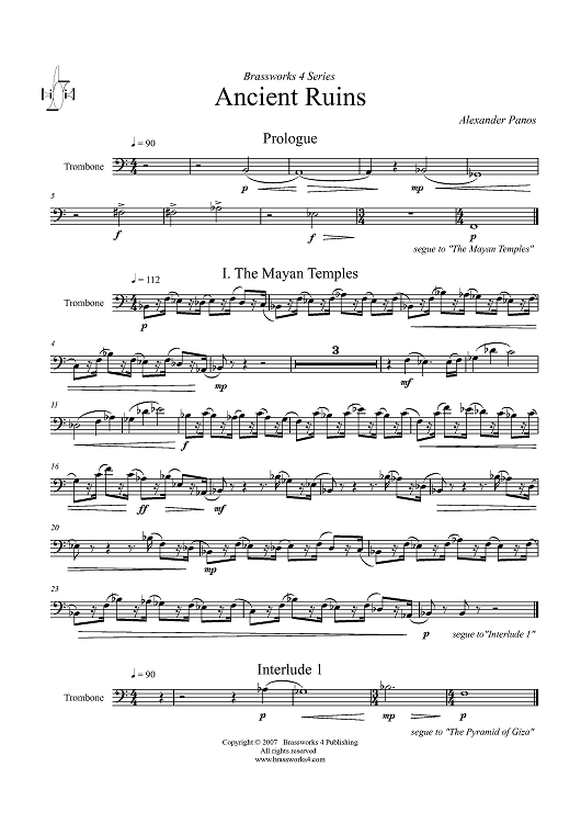 Digital Sheet Music for Ancient Ruins - Trombone by Alexander Panos scored for Brass Quintet; id:363189