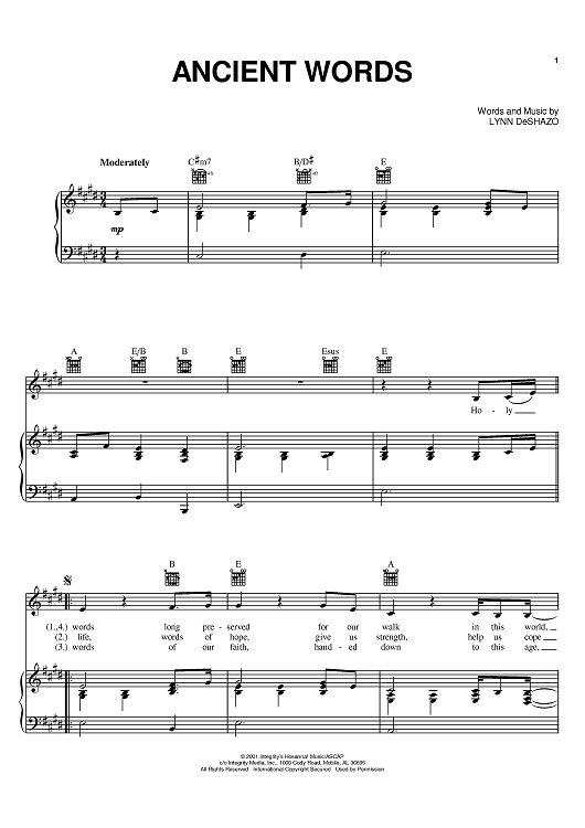 "Ancient Words" Sheet Music by Lynn DeShazo
