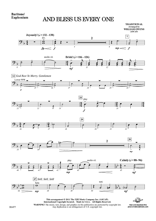 "And Bless Us Every One - Baritone/Euphonium" Sheet Music by Traditional