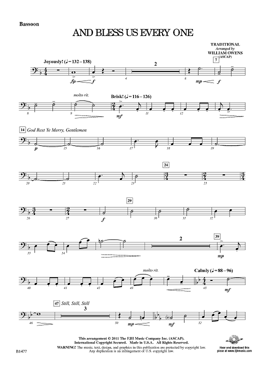 Digital Sheet Music for And Bless Us Every One - Bassoon by Traditional, William Owens scored for Concert Band; id:425863