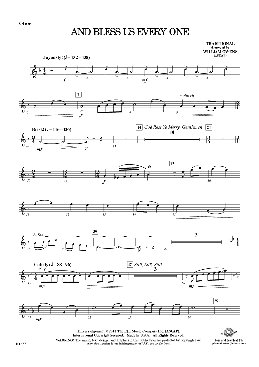 Digital Sheet Music for And Bless Us Every One - Oboe by Traditional, William Owens scored for Concert Band; id:425862