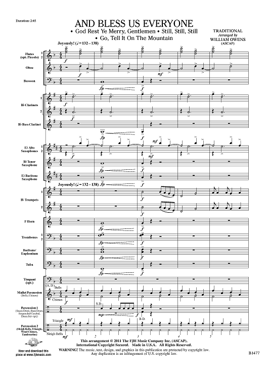 Digital Sheet Music for And Bless Us Every One - Score by Traditional, William Owens scored for Concert Band; id:425858
