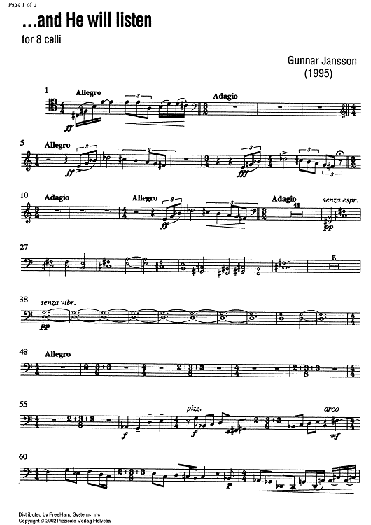 Digital Sheet Music for ...and He will listen by Gunnar Jansson scored for 8 Cellos; id:349800