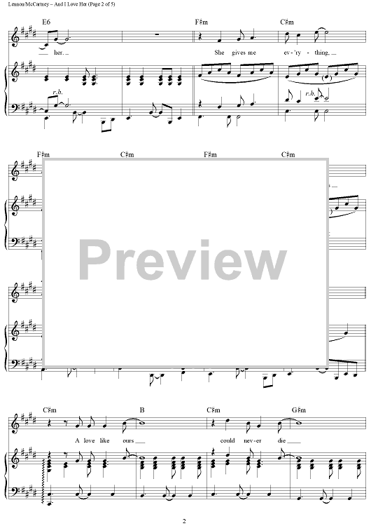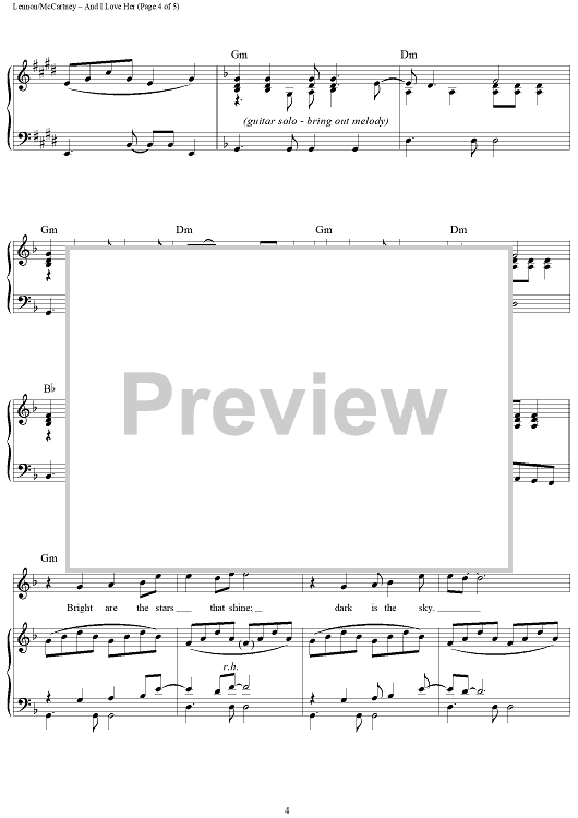 Digital Sheet Music for And I Love Her by Paul McCartney, The Beatles, John Lennon scored for Piano/Vocal/Chords; id:361859