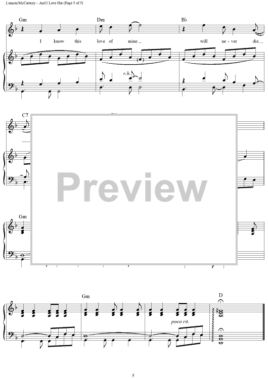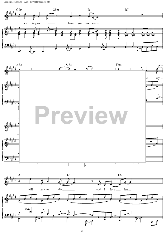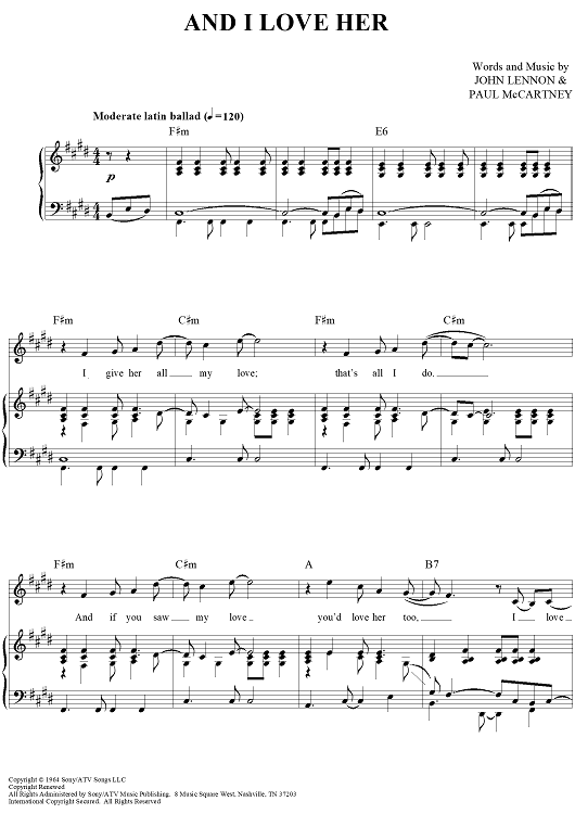 "And I Love Her" Sheet Music by The Beatles