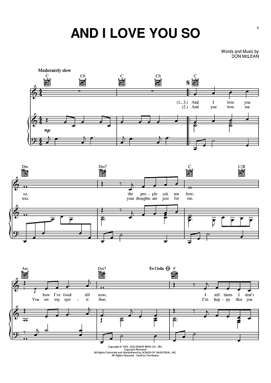 Digital Sheet Music for And I Love You So by Elvis Presley, Don McLean, Perry Como, Helen Reddy, Shirley Bassey scored for Piano/Vocal/Chords; id:379256