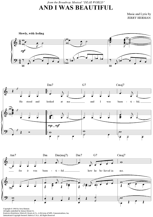 "And I Was Beautiful" Sheet Music by Jerry Herman