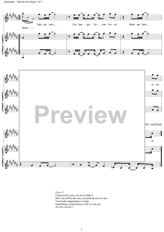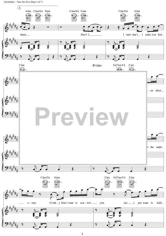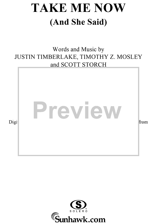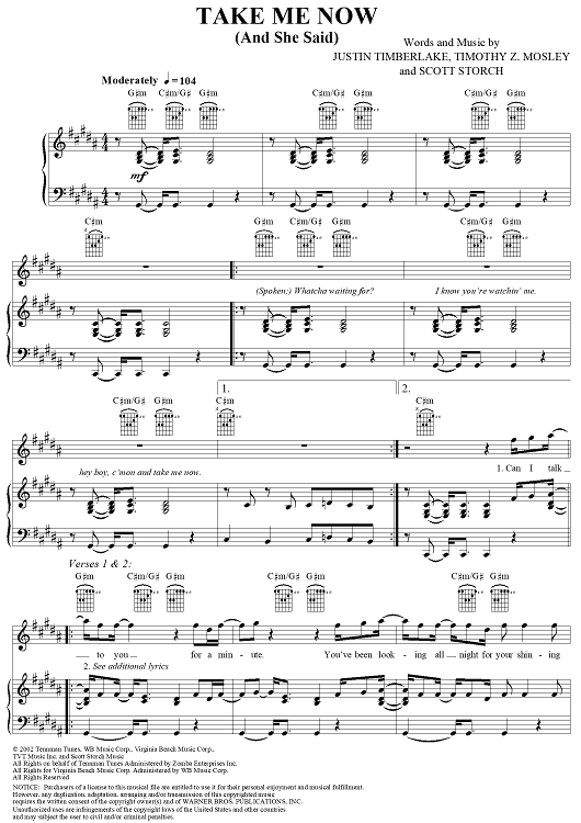 Digital Sheet Music for (And She Said) Take Me Now by Scott Storch, Timothy Z. Mosley, Justin Timberlake scored for Piano/Vocal/Chords; id:296457