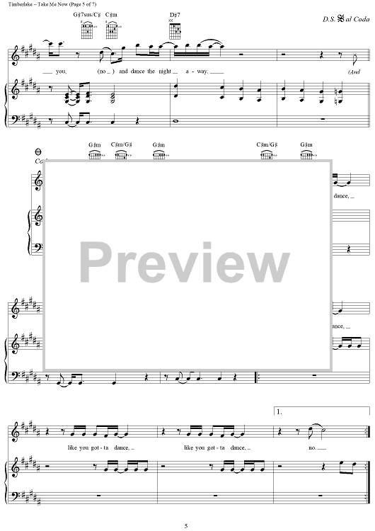 "(And She Said) Take Me Now" Sheet Music by Justin Timberlake