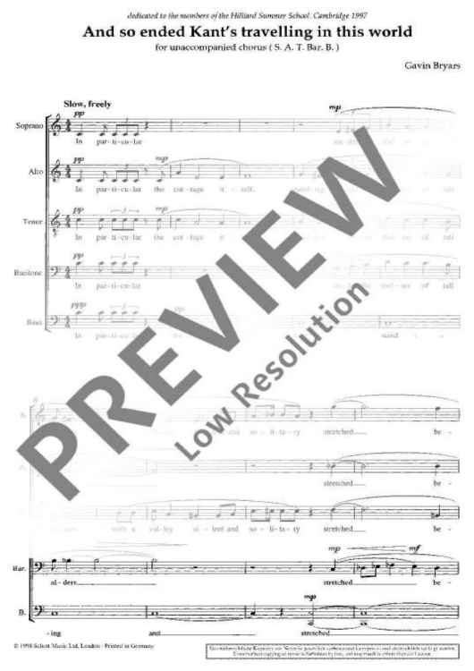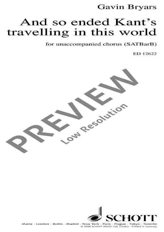 Digital Sheet Music for And so ended Kant's travelling in this world - Choral Score by Gavin Bryars scored for Mixed Choir (satbarb); id:474583