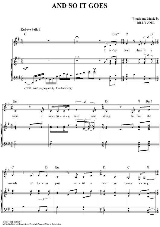 Digital Sheet Music for And So It Goes by Billy Joel, Karrin Allyson scored for Piano/Vocal/Chords; id:403185