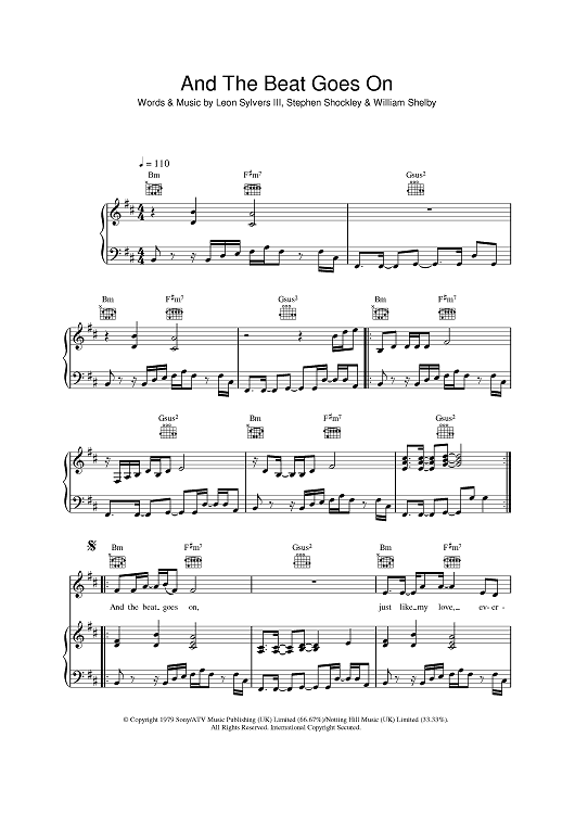 Digital Sheet Music for And The Beat Goes On by William Shelby, Stephen Shockley, Leon Sylvers, The Whispers scored for Piano/Vocal/Chords; id:396816