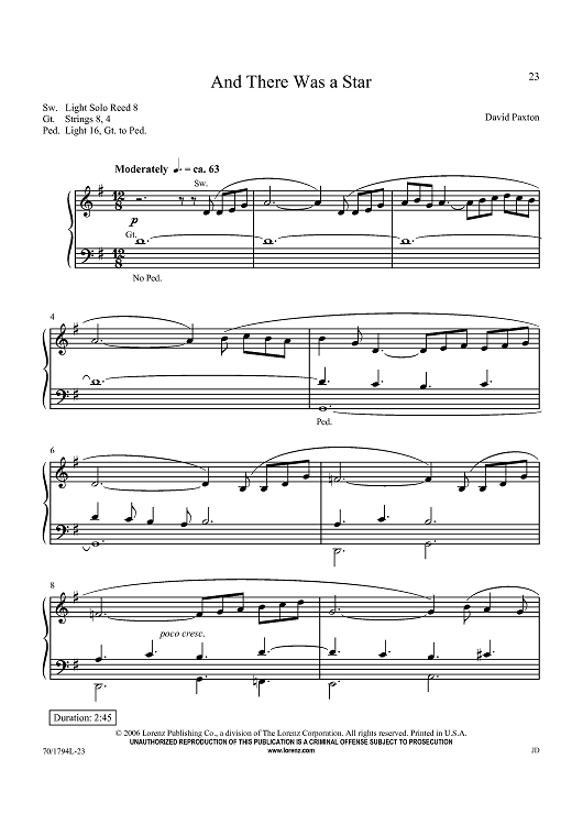 Digital Sheet Music for And There Was a Star by David Paxton scored for Organ Solo; id:437763