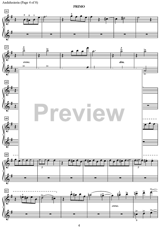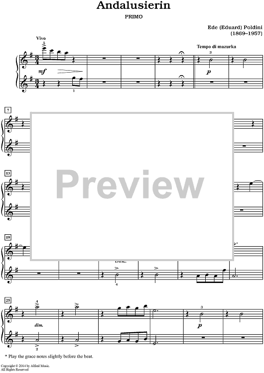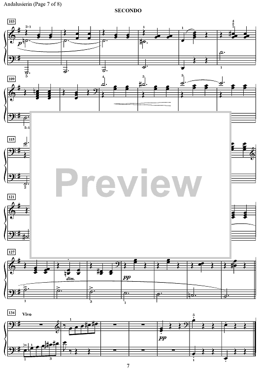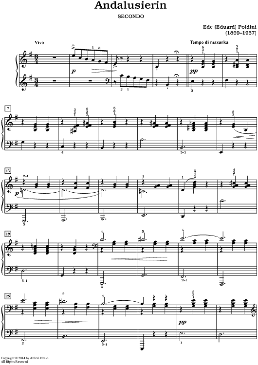 Digital Sheet Music for Andalusierin by Edvard Poldini scored for 1 Piano, 4 Hands; id:503061