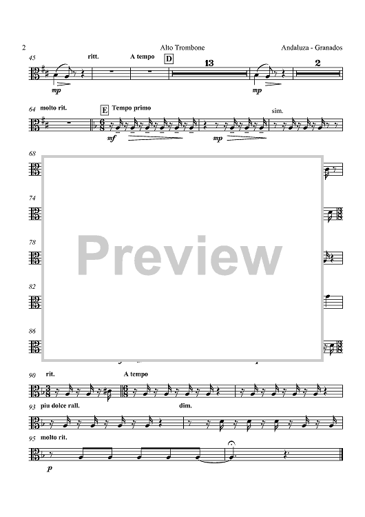 "Andaluza - Alto Trombone" Sheet Music by Enrique Granados