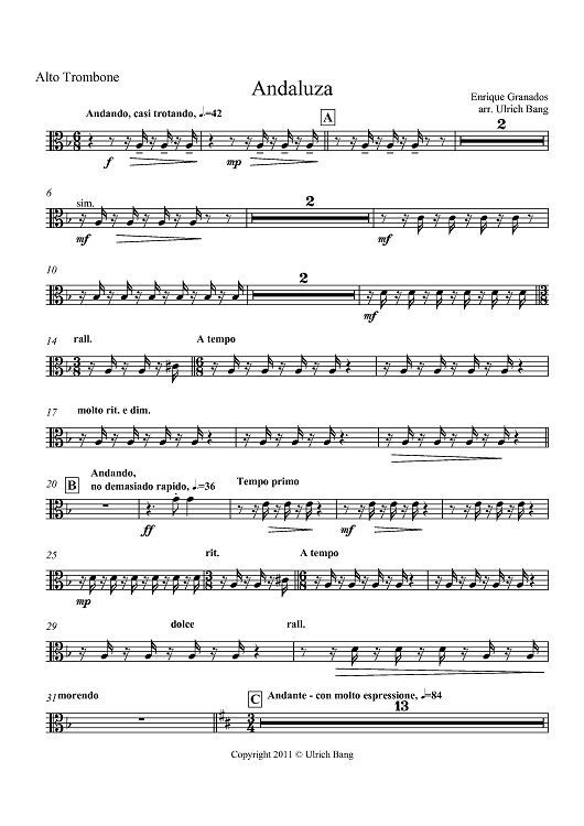 Digital Sheet Music for Andaluza - Alto Trombone by , Ulrich Bang, Enrique Granados scored for Brass Ensemble; id:420992