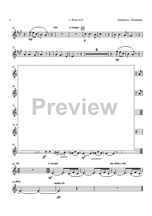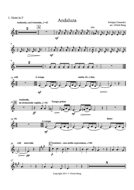 Digital Sheet Music for Andaluza - Horn in F 1 by , Ulrich Bang, Enrique Granados scored for Brass Ensemble; id:420990