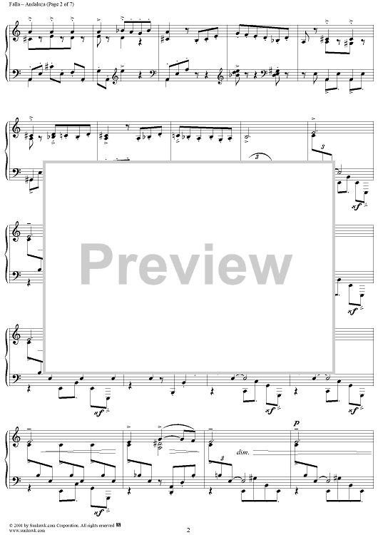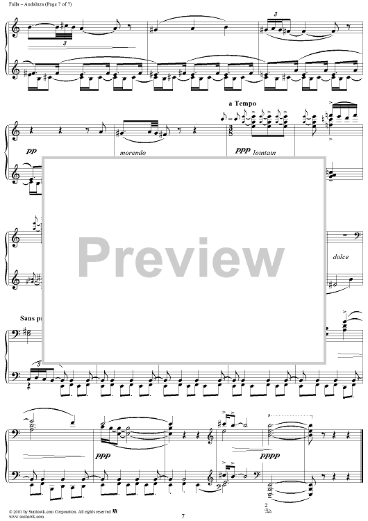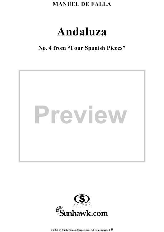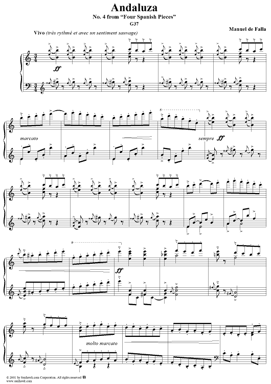 Digital Sheet Music for Andaluza No. 4 from “Four Spanish Pieces”, G37 by Manuel De Falla scored for Piano Solo; id:256187