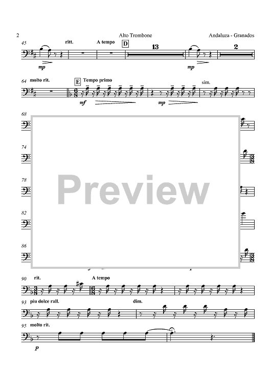 "Andaluza - Tenor/Alto Trombone" Sheet Music by Enrique Granados