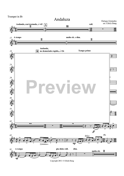 Digital Sheet Music for Andaluza - Trumpet in Bb by , Ulrich Bang, Enrique Granados scored for Brass Ensemble; id:420987
